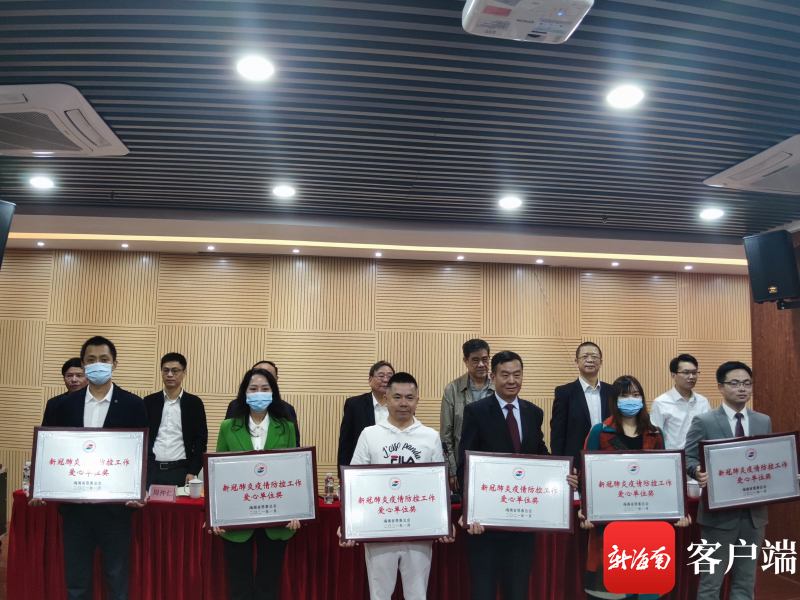 新海南客户端、南海网、南国都市报1月30日消息(记者 韩星)1月30日,海南省慈善总会召开新冠疫情防控志愿服务表彰会,授予椰树集团有限公司等11个单位“突出贡献奖”,授予海南省潮商经济促进会等6个单位“先进单位奖”,授予海南省政协提案委员会等31个单位“爱心单位奖”,授予唐华等17名个人“爱心个人奖”。