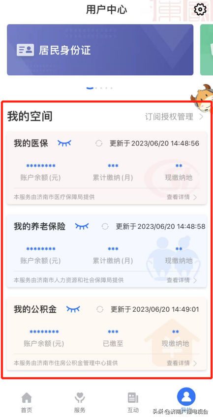 此外,你还可以通过“爱山东”“数字空间”一键订阅查看养老保险、医疗保险以及公积金的账户余额等相关信息。
