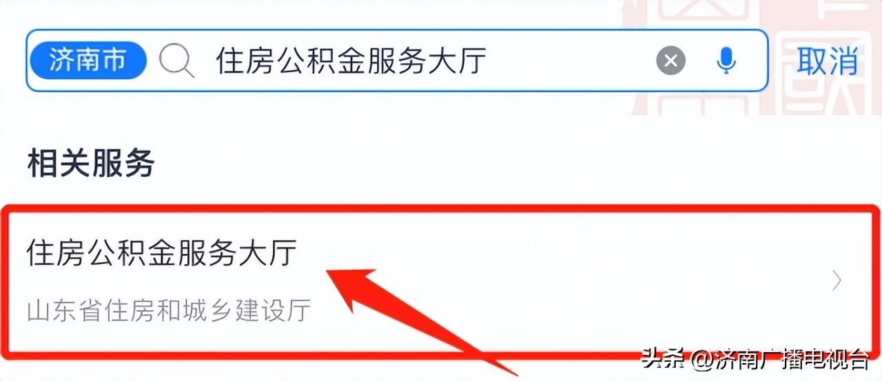1、打开“爱山东”济南分厅,首页搜索“公积金”,点击进入“住房公积金服务大厅”;