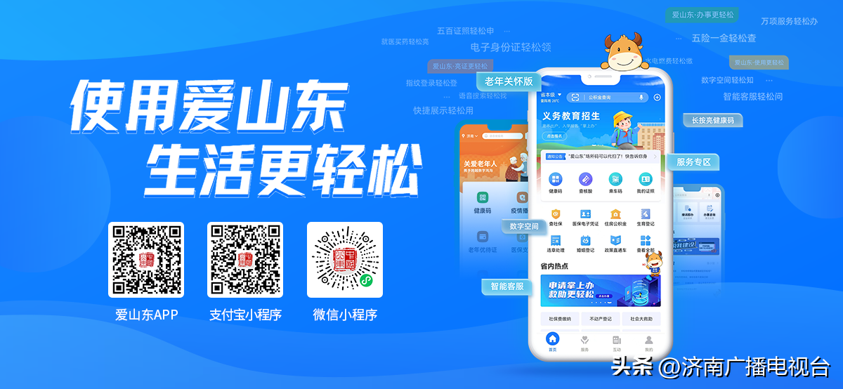 民有所需,“数”有所为,“爱山东”济南分厅聚焦群众关心关注的五险一金事项,接入打造社保通查、医保电子凭证、住房公积金服务大厅、数字空间等相关主题服务,让群众办事省时省力更省心。